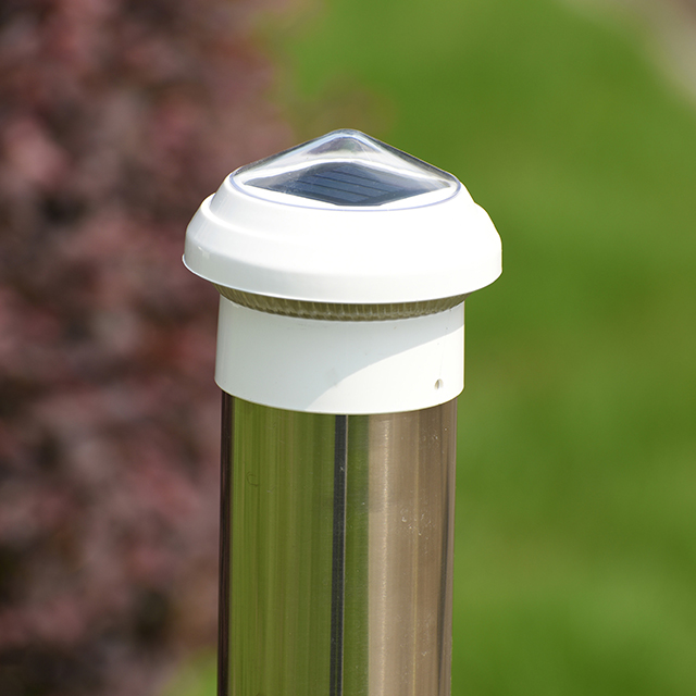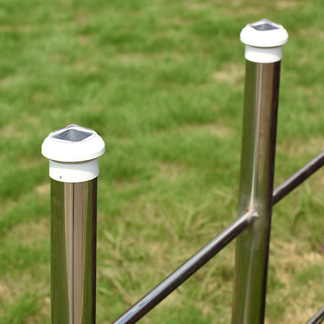 2211-CP1 WH Plastic Chain Link Fence Solar Post Cap Light este un produs de iluminat eficient și prietenos cu mediul, conceput pentru stâlpii de gard cu lanț de 2,5 inchi, potrivit pentru nevoile de iluminat decorativ și de siguranță în spațiile exterioare. Măsoară 85x85x70 mm și este fabricat din material plastic de înaltă calitate, care este durabil și poate rezista la medii aspre în aer liber, cum ar fi vântul, ploaia și razele UV. Lampa de stâlp este proiectată să se potrivească perfect cu stâlpii de gard standard de 2,5 inchi. Este ușor și rapid de instalat fără a fi nevoie de instrumente suplimentare sau operațiuni complicate și poate adăuga rapid o sursă de lumină strălucitoare în curtea, grădina, aleea sau zona de gard.